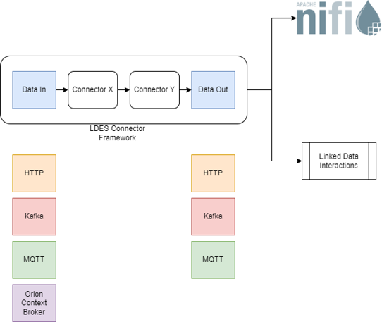 Apache Kafka, Fiware-Orien Context Broker, and MQTT can be used in the publishing pipeline to publish data as LDES.